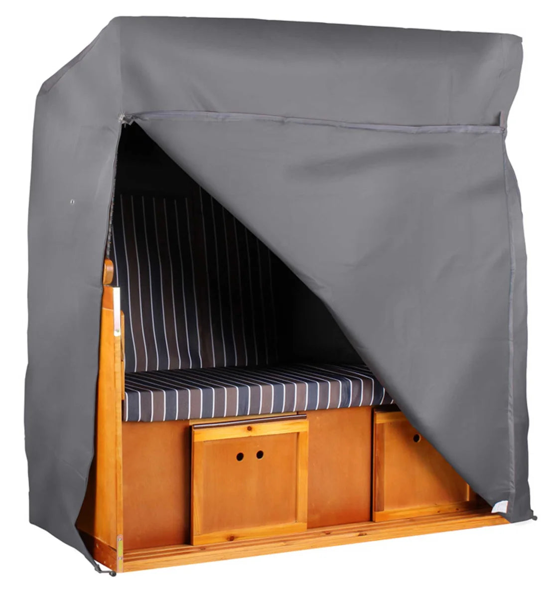 Schützen Sie Ihre Wohlfühloase mit der exklusiven AERO-PROTECT Schutzhülle von bene protect. Diese hochwertige Abdeckung in elegantem Dunkelgrau wurde speziell entwickelt, um die Lebensdauer Ihres XXL-Strandkorbs signifikant zu verlängern.